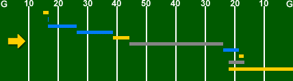 ![]() 1-10-PS27 Bradshaw 10 yard pass to Grossman left, who makes great diving grab (Waters). 1-10-PS37 Harris 7 yard run left (Jones). 2-3-PS44 Harris 1 yard run up middle (Jones). 3-2-PS45 Harris 3 yard run off left tackle (Lewis). 1-10-PS48 Bradshaw pass to Grossman middle overthrown. 2-10-PS48 Bradshaw pass to Swann broken up (Waters). 3-10-PS48 Bradshaw loses snap, picks up ball, rolls left with Cowboys swarming, sacked for loss of 11 by Henderson, ball stripped away by Hegman, 37 yard return for touchdown (12:08). Septien PAT. Bradshaw shaken up on play, smelling salts administered on sidelines.Dallas scoring drive: 37 yards, 1 plays, 0:08. Dallas 14, Pittsburgh 7 Septien kick into endzone, touchback. ![]() 1-10-PS20 Harris 2 yard run left, hit hard & taunted by Martin. 2-8-PS22 Harris 3 yard run left (Cole). 3-5-PS25 Bradshaw 75 yard dart to Stallworth right (catch at Steeler 35), Stallworth then broke up middle (got great block from Swann) & streaked remaining 65 yards untouched for touchdown. Gerela PAT.Pittsburgh scoring drive: 80 yards, 3 plays, 1:43. Pittsburgh 14, Dallas 14 Gerela kick to Dallas 10, Johnson 21 yard return (Mosier). ![]() 1-10-DC31 Newhouse sweep left, loss of 4 yards (Banaszak). 2-14-DC27 Dorsett sweep right, cut off by Greene, nailed by Ham for loss of 3 yards. 3-17-DC24 Staubach plastered by Mean Joe Greene for loss of 11 yards, fumbled, Steve Furness had ball in his hands at Dallas 11 but tried to pick it up instead of falling on it, ball squirted away & was recovered by Rafferty for Dallas at 13 yard line. 4-28-DC13 D. White 38 yard punt, Bell 3 yard return (Henderson). ![]() 1-10-DC48 Bradshaw 26 yard strike to Swann right (Waters). 1-10-DC22 Harris sweep left, snowed under for loss of 8 yards (Jones). 2-18-DC30 Bradshaw pass to Grossman down middle incomplete. Play nullified and Dallas penalized 5 yards for defensive holding (Henderson). Automatic 1st down. 1-10-DC25 Bradshaw pass to Stallworth over middle dropped. 2-10-DC25 Harris 2 yard run left (Stalls). 3-8-DC23 Bradshaw sacked on all-out blitz, loss of 11 yards (Hegman). 4-19-DC34 Gerela's 51-yard field goal attempt hit the crossbar, no good. ![]() 1-10-DC34 Dorsett 5 yard run (Furness). 2-5-DC39 Newhouse sweeep left, no gain (Cole) 3-5-DC39 Staubach 7 yard pass to P. Pearson right (Ham). 1-10-DC46 Staubach 11 yard pass to Hill right (Wagner). Two-minute warning. 1-10-PS44 Staubach beautiful screen pass to Dorsett under incredible pass rush, Dorsett makes outstanding, stretching grab and races 12 yards for 1st down (Johnson). Dorsett taunts Johnson by holding ball in his face & Johnson attacks Dorsett. Offsetting unsportsmanlike conduct fouls on against Dallas (Dorsett) and Pittsburgh (Johnson) after the play. 1-10-PS32 Staubach, who is "sawn in half" (to quote Myron Cope) on the play by Dwight White, heaves a pass toward D. Pearson in crowd over middle. Blount intercepts at Pittsburgh 16 & returns ball 13 yards (D. Pearson) before being LEVELED by DuPree with forearm to the head (DuPree flagged for 15 yard personal foul). ![]() 1-10-PS44 Harris sweep left, loss of 2 yards (Hegman). Play nullified and Pittsburgh penalized 10 yards for illegal use of hands (Mullins). 1-20-PS34 Bradshaw flanker screen right to Swann, who makes an amazing run after catch, dodging, spinning & leaping over would-be tacklers until he's finally dragged down 29 yards downfield (Waters) 1-10-DC37 Bradshaw 21 pass to wide open Swann (Lynn's 3rd consecutive catch), who soars high to make one of his patented, leaping grabs (Barnes). 1-10-DC16 Bradshaw pass over middle to wide open Harris dropped. 2-10-DC16 Harris 9 yard run left, nearly broke free for TD (Kyle). Pittsburgh uses first time out. 3-1-DC7 Bradshaw rollout right, lofts beautiful touch pass to Bleier, who makes an unbelievable leaping catch in right corner of endzone, touchdown (0:26). Gerela PAT.Pittsburgh scoring drive: 56 yards, 5 plays, 1:15. Pittsburgh 21, Dallas 14 Gerela kick to Dallas 9 yard line, Brinson 25 yard return (Winston). ![]() 1-10-DC34 Staubach 1 yard run evading pass rush (Greenwood). 2-9-DC35 P. Pearson 6 yard draw right (Ham). 3-3-DC41 Staubach pass to P. Pearson hits him in the hands, dropped.END OF 2ND QUARTER Pittsburgh 21, Dallas 14 Septien kick to Pittsburgh 15, L. Anderson 24 yard return. (Brown). ![]() 1-10-PS39 Harris sweep right, loss of 4 yards (Breunig). 2-14-PS35 Bradshaw pass to Bleier left overthrown. 3-14-PS35 Bradshaw pass 9 yard pass complete to Bell (subbing for Stallworth, who missed 2nd half with leg cramps), then forced out of bounds. 4-5-PS44 Colquitt 41 yard punt, Johnson fair catch. ![]() 1-10-DC15 Newhouse run off left tackle, loss of 2 yards (White). 2-12-DC13 Staubach pass under pressure to Dorsett dropped. Play nullified and Pittsburgh penalized 5 yards for defensive holding (Shell). Automatic 1st down. 1-10-DC18 Newhouse 5 yard run right (Lambert). 2-5-DC23 Dallas penalized 5 yards for delay of game. 2-10-DC18 Staubach 11 yard scramble evading pass rush (Greene). 1-10-DC29 Dorsett 1 yard run left (Cole). 2-9-DC30 Staubach 7 yard scramble evading pass rush (Furness). 3-2-DC37 Laidlaw run left, no gain (Cole). 4-2-DC37 D. White 43 yard punt, Bell 4 yard return (Henderson). ![]() 1-10-PS24 Harris run right, loss of 2. 2-12-PS22 Bleier 1 yard run left (Stalls). 3-11-PS23 Pittsburgh penalized 5 yards for false start (Kolb). 3-16-PS18 Bradshaw pass one-hopped to Swann right sideline, incomplete. 4-16-PS18 Colquitt 36 yard punt, Johnson 12 yard return (Peterson). ![]() 1-10-PS42 Staubach received lateral from Dorsett, pass to Hill in end zone badly overthrown & incomplete (Johnson). 2-10-PS42 Dorsett 4 yard sweep right (Greenwood). 3-6-PS38 Staubach 8 yard pass to P. Pearson left (Blount). 1-10-PS30 Dorsett 1 yard run right (Ham). 2-9-PS29 Laidlaw 7 yard draw right (Ham). 3-2-PS22 Dorsett 5 yard run right (COle). 1-10-PS17 Staubach pass to DuPree right overthrown out of bounds. 2-10-PS17 Dorsett bursts free for 7 yards up