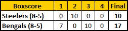 1977 Steelers 10 at Bengals 17