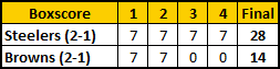 1977 Steelers 28 at Browns 14